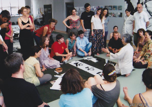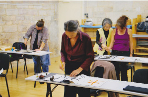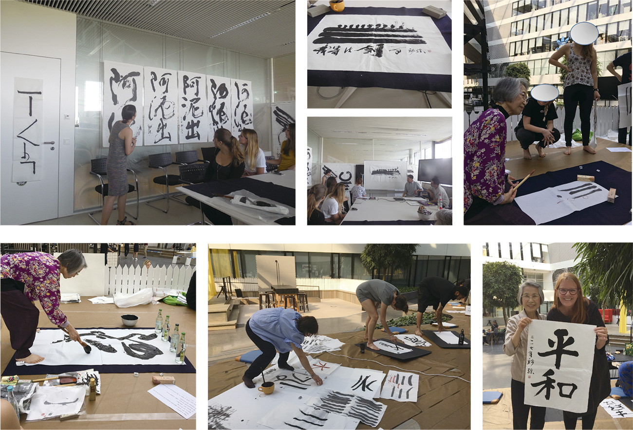 姪のダンスのワークショップに参加している若い人たちも大勢、書のワークショップに参加して頂いた。身体を使っての書の表現がとても上手で理解も早い。受講生はフランス・ギリシャ・フィンランドと国際色豊か。通訳は英語とフランス語。